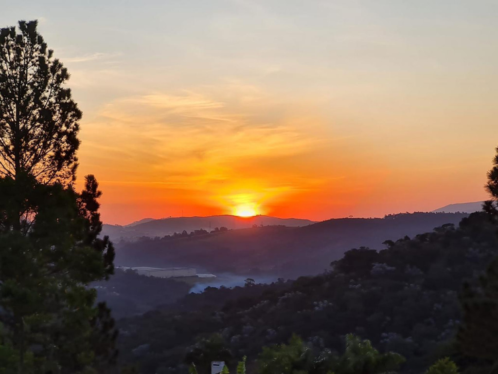 Excelente localização próxima à portaria, com espetacular vista panorâmica para montanhas verdes e com lindo pôr-do-sol.