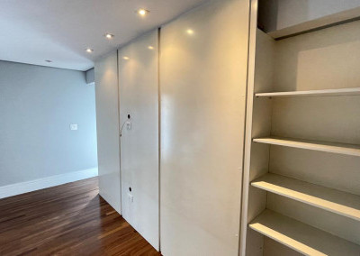- Armários sob medida no corredor que leva às suítes